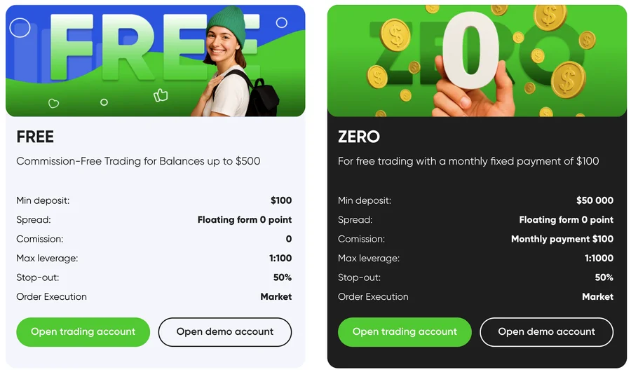 - FREE: up to $500 deposit, no commissions, ideal for starters.